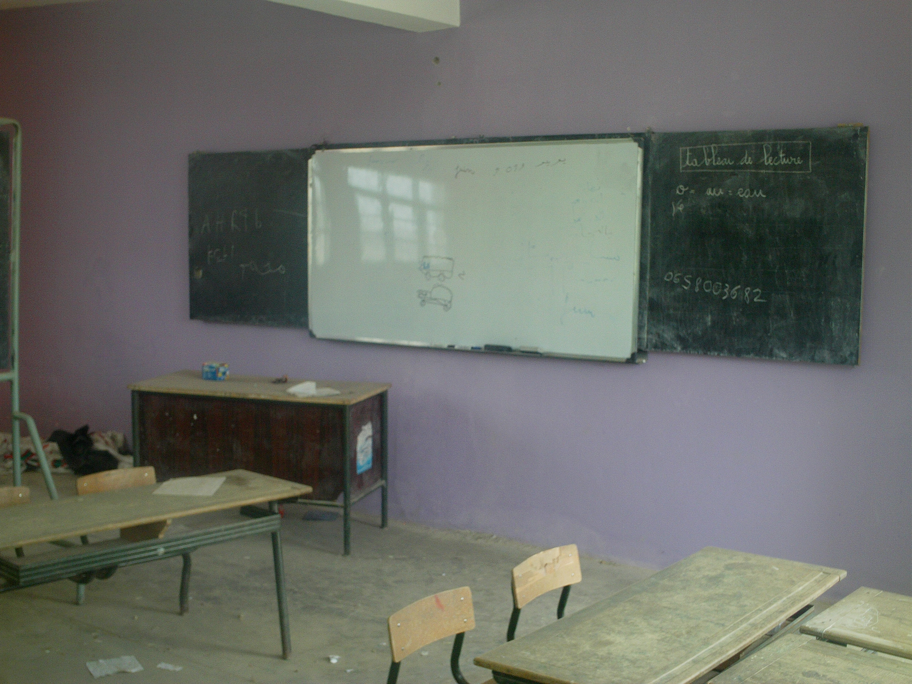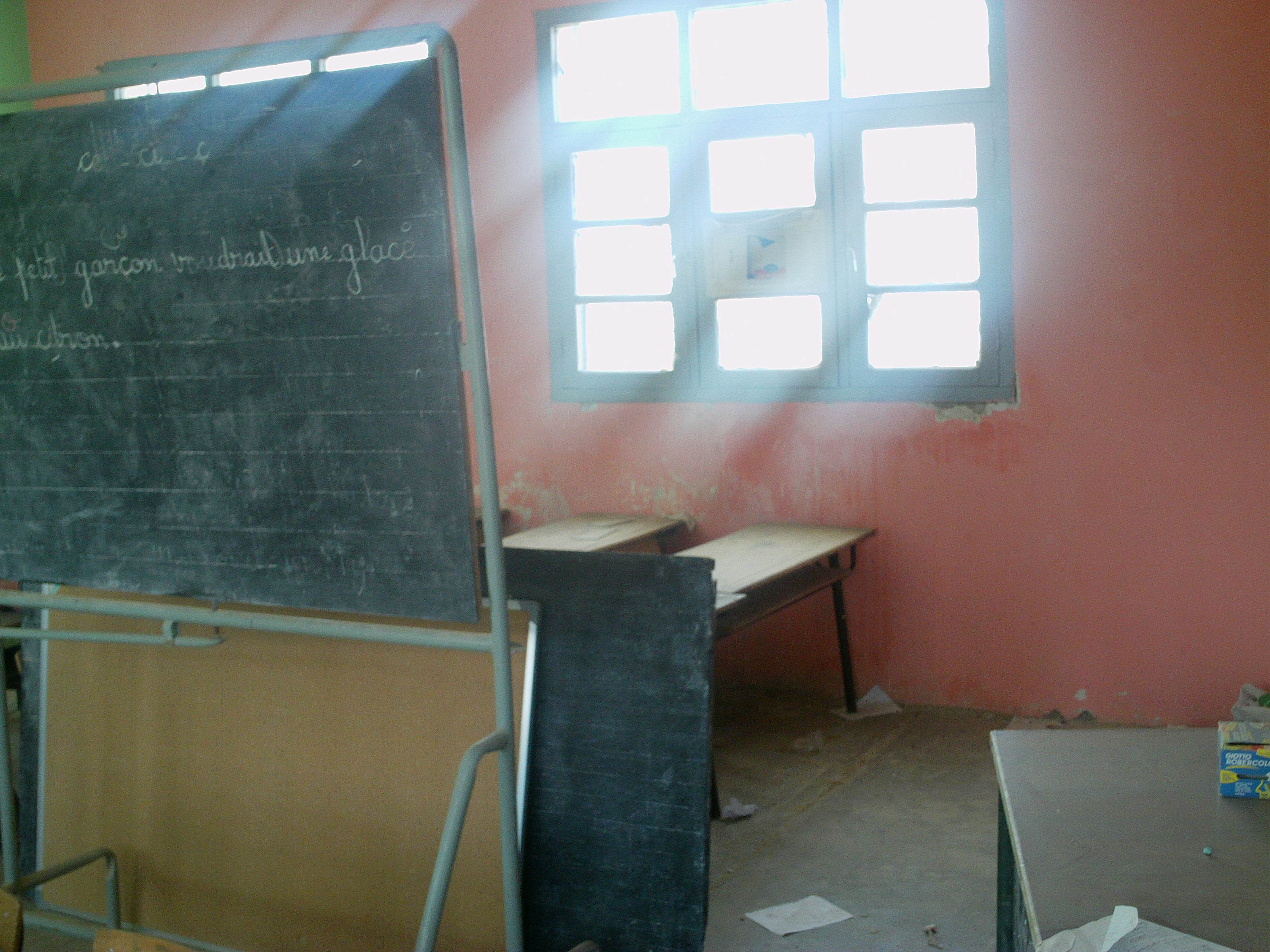 Nous avons également acheter du matériel pour la classe qui est complètement dénudée d’objets: