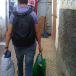 Nous profitons également pour acheter des fournitures à la famille du coordonnier habitant à Salé. Les jours avant, les membres de l’AMSDD se sont rendus chez elle afin de leur offrir un panier alimentaire et de faire un état des lieux de leurs besoins.